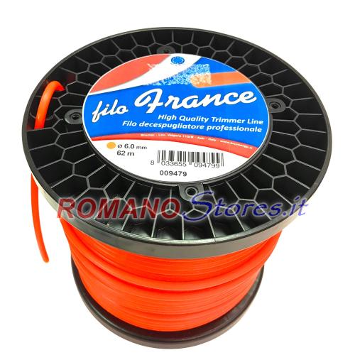 FILO IN NYLON TONDO FRANCE PER TESTINA DECESPUGLIATORE D.6 mm. 62 Mt. SUPER PROFESSIONALE
